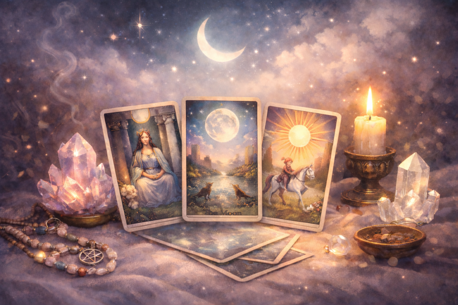 Ik bied tarotleggingen per e-mail aan. Bij je aanvraag kun je een persoonlijke vraag of intentie meegeven, bijvoorbeeld op het gebied van liefde, werk, persoonlijke groei of spiritualiteit.